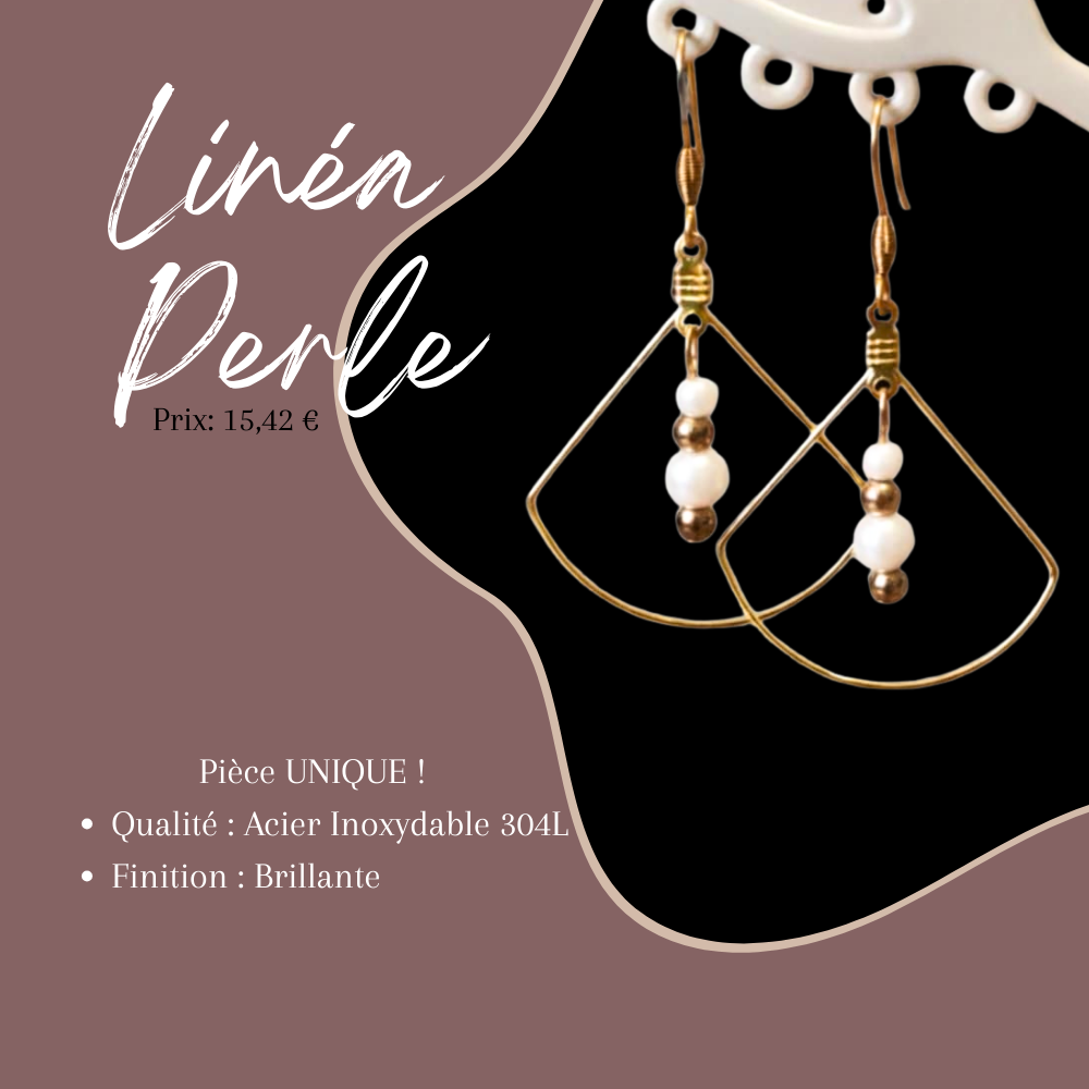 Adoptez l’élégance minimaliste des boucles d’oreilles « Linéa Perle ». Cette Pièce UNIQUE marie la simplicité des formes géométriques à la douceur des perles. La structure est un motif triangulaire ou en éventail, fin et doré, à l’intérieur duquel est suspendue une grappe de perles de culture ou d’imitation, alternant blanc nacré et perles dorées. Ce bijou est parfait pour apporter une touche de sophistication discrète et lumineuse à votre tenue, qu’elle soit de jour ou de soirée.